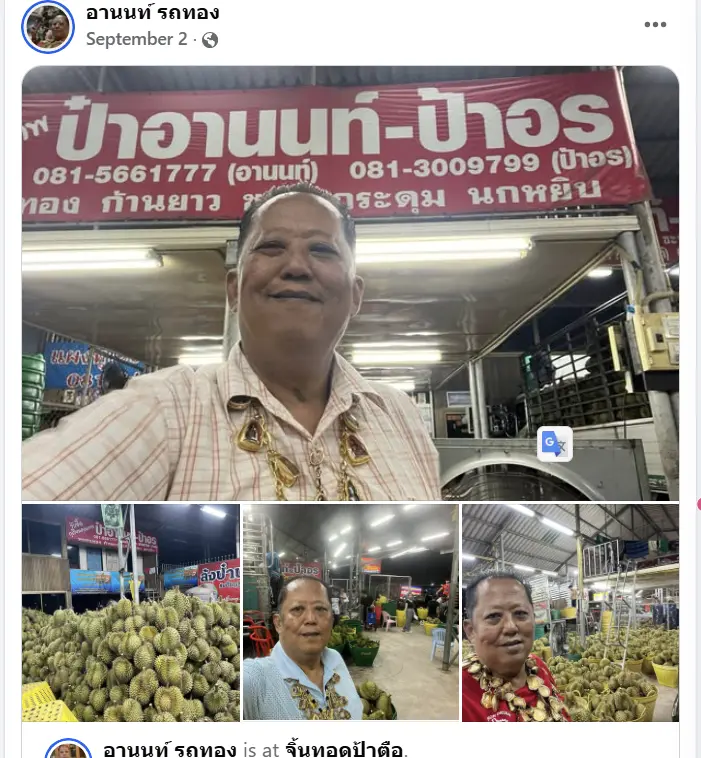 阿农伯有个Facebook账号,上面基本上就两种内容,要么是宣传自家榴莲好……
