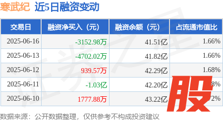 本站消息,6月16日,寒武纪(688256)融资买入1.99亿元,融资偿还2.3亿元优优配送版,融资净卖出3152.98万元,融资余额41.51亿元。